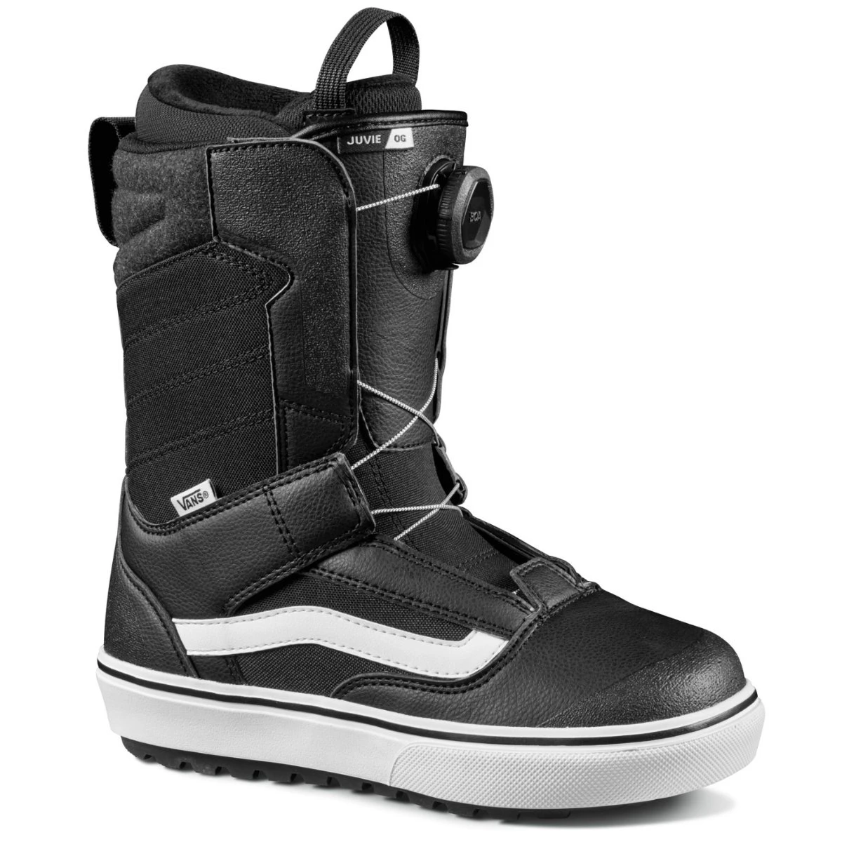The Juvie OG is built to support groms who rip. Complete with a V1 UltraCush™ liner, V1 POPCUSH™ footbed, and V1 Waffle Lug outsole, this boot matches features with all of Vans’ adult-level OG products. When combined with the BOA® Fit System, the Juvie OG is the youth culture’s clear choice for progression and undeniable style.